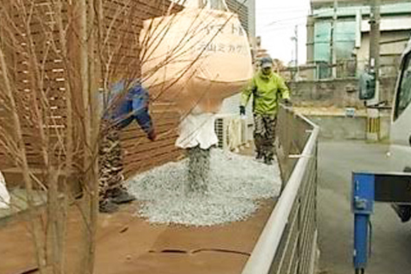 市販の15kg入りの砂利ですと、1㎡当たり4袋です。