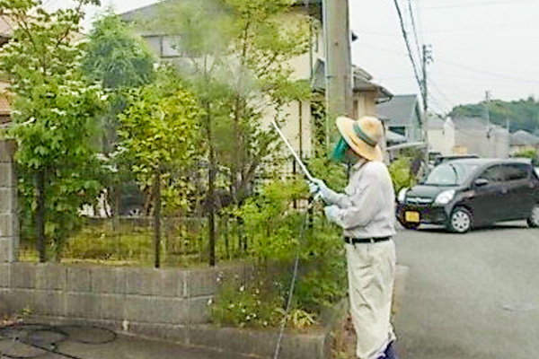 また、薬剤の飛びすぎを防ぐために、一般のご家庭ではエンジン付き噴霧器は使用しておりません。